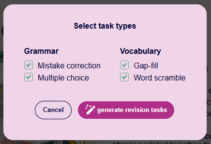 Several months ago, we introduced a new feature: a generator of revision tasks. Thanks to all the feedback you provided in your messages, emails and the annual survey, we’ve been able to extend the tool. So, without further ado, we’re presenting: Revision Tasks Generator 2.0! 🎉🎉🎉