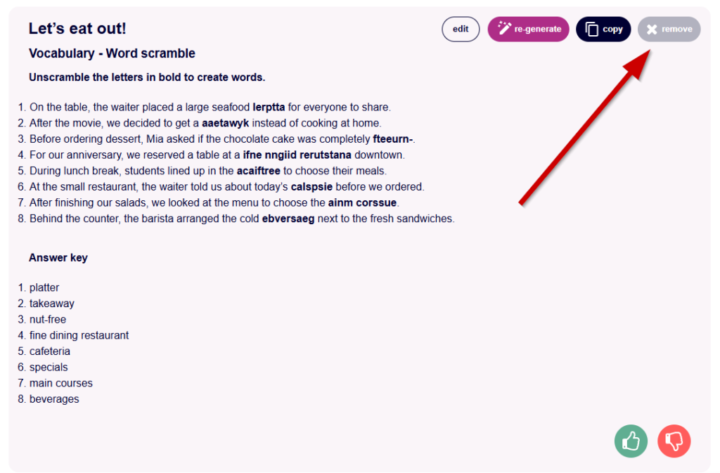 🟪 Word Scramble: Students unscramble letters to create words or phrases. This task is designed to practise or test target vocabulary.