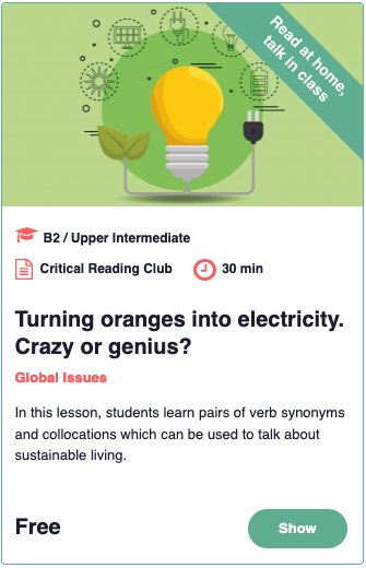 Their purpose is to inspire critical discussion while at the same time expand students’ language proficiency. Learn more about how to use our Critical Reading Club lessons in this article.