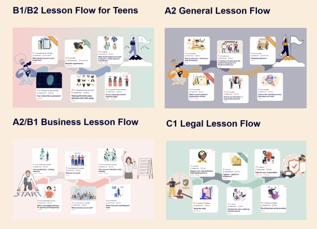 Lesson Flows are perfect for teachers who want a structured approach, are starting with new students, or prefer a curriculum-like path without using a traditional textbook.